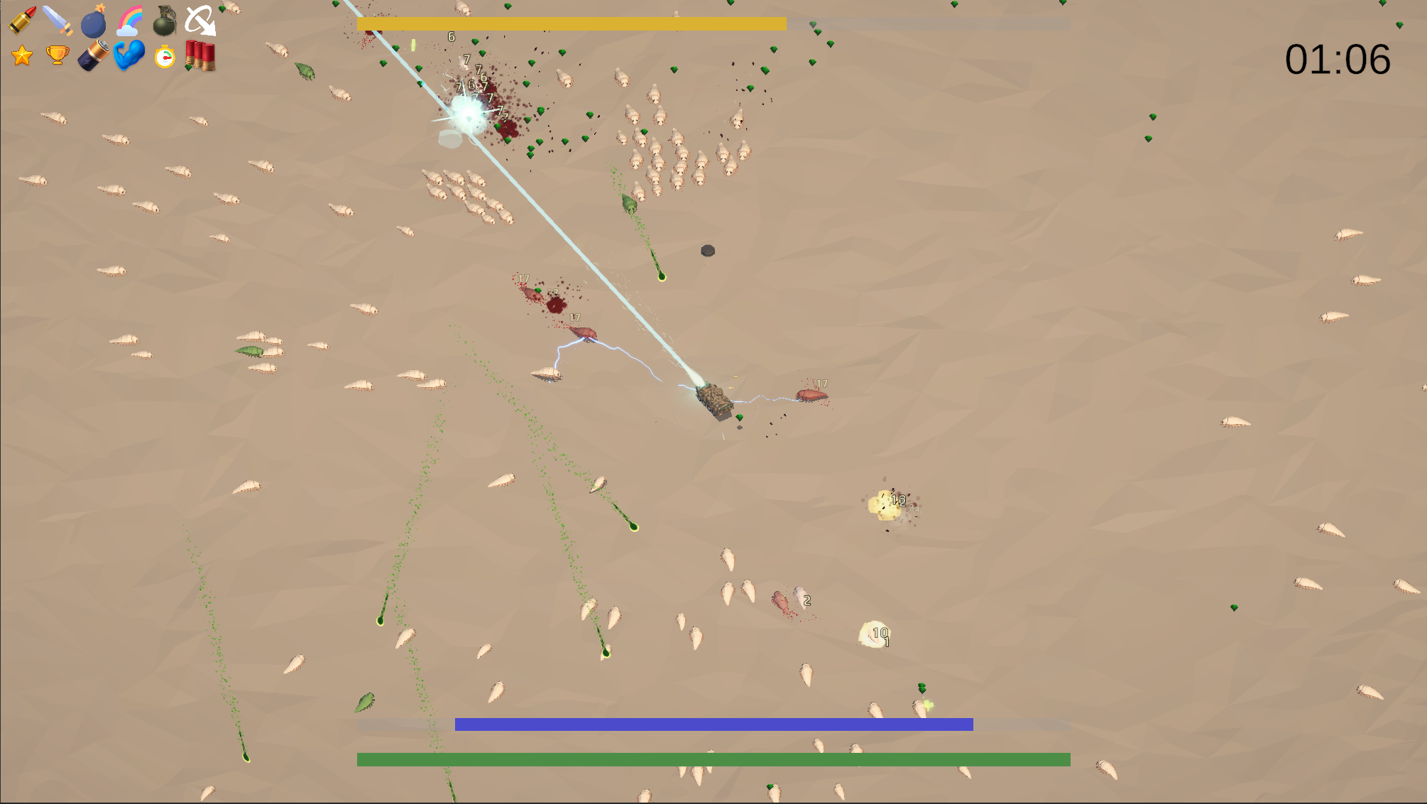 Decimate the swarm as you collect experience, upgrade your weapons, and shmove your tank to survive.